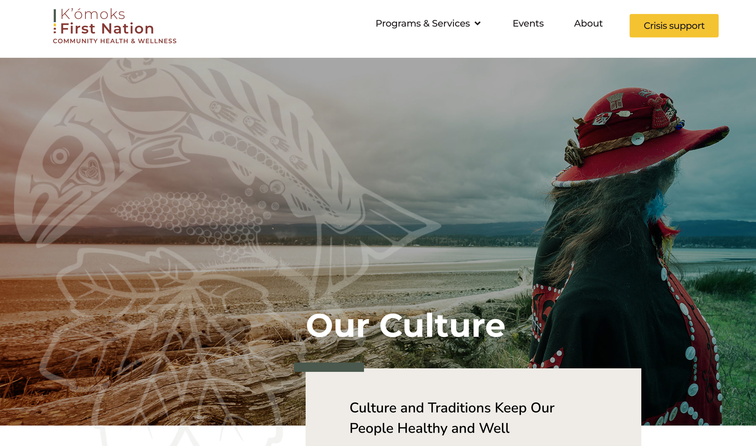 I worked as project manager and copywriter for this website project designed to make health and wellness programs and services more accessible for members. The website would not have been possible without the incredible work and support of K’ómoks community members, the KFN Community Services and Health teams, K’ómoks artist Jeanette Laberge, photographer extraordinaire Karen Milstein-McKinnon, designer Rebecca Rolseth and developer Brad Warren.